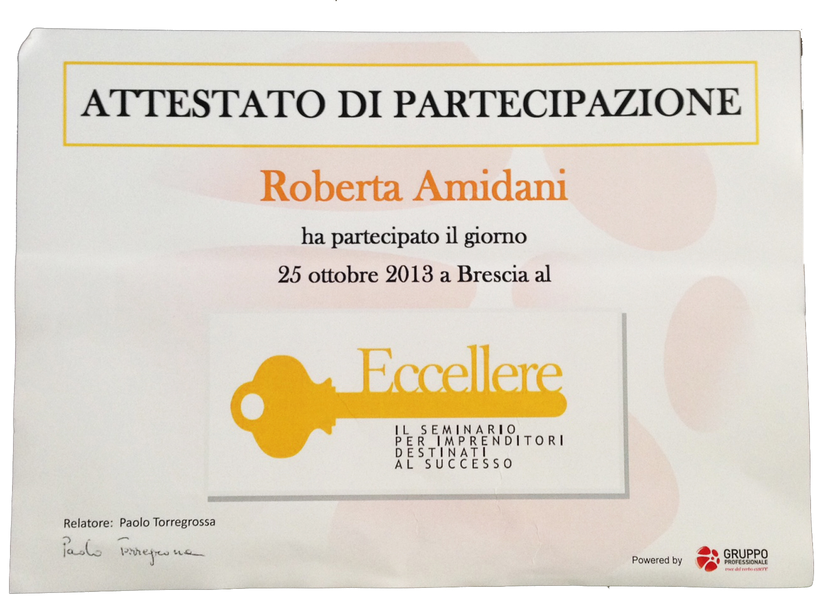 Il titolo del corso era “Eccellere”, tenuto da Paolo Torregrossa e Max Damioli in collaborazione con BNI Italia (Business Network International) e Lyoness.