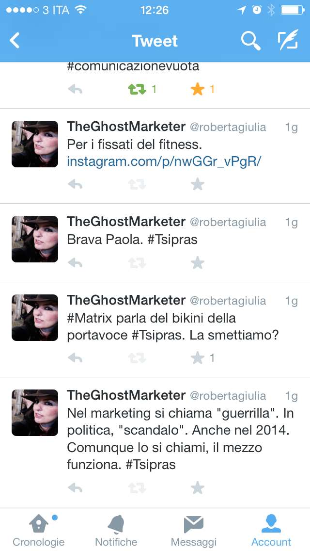 [Crocifissa per alzata di mano. Pure da qualche manina della sua stessa lista, per la quale lei lavora con un contratto da free lance, per inciso.]